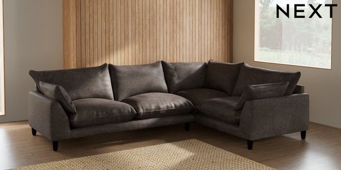 7.2.10 Noa Deep Relaxed Sit Large Corner Sofa - Right Hand Plush Chenille Mink Brown High Leg - Dark | Made Click here to use our website with more accessibility support, for example screen readers