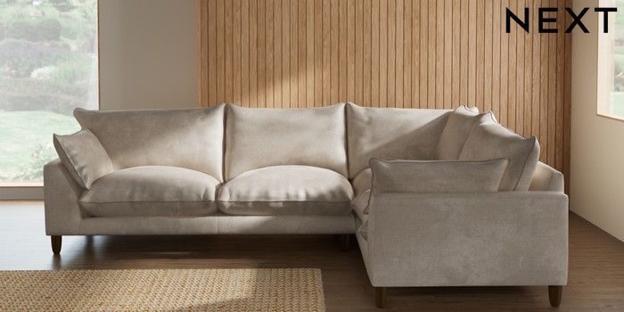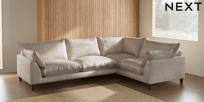 7.2.10 Noa Deep Relaxed Sit Large Corner Sofa - Right Hand Plush Chenille Oyster High Leg - Mid | Made Click here to use our website with more accessibility support, for example screen readers
