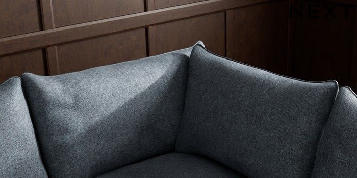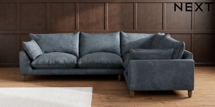 7.2.10 Noa Deep Relaxed Sit Large Corner Sofa - Right Hand Plush Chenille Slate Blue High Leg - Mid | Made Click here to use our website with more accessibility support, for example screen readers