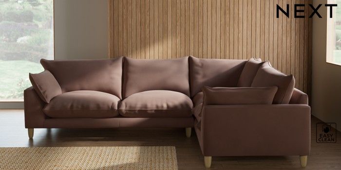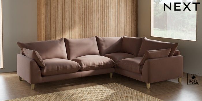 7.2.10 Noa Deep Relaxed Sit Large Corner Sofa - Right Hand Plush Velvet Easy Clean Mid Natural High Leg - Light | Made Click here to use our website with more accessibility support, for example screen readers