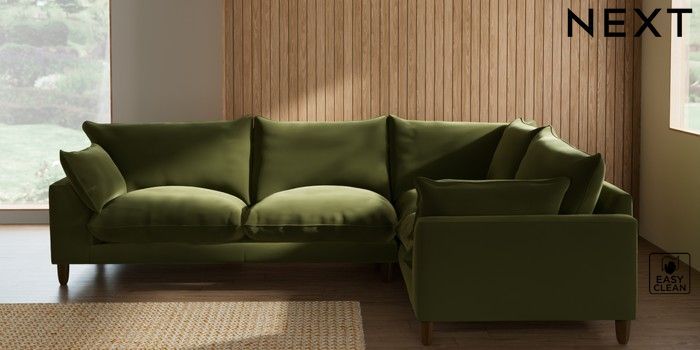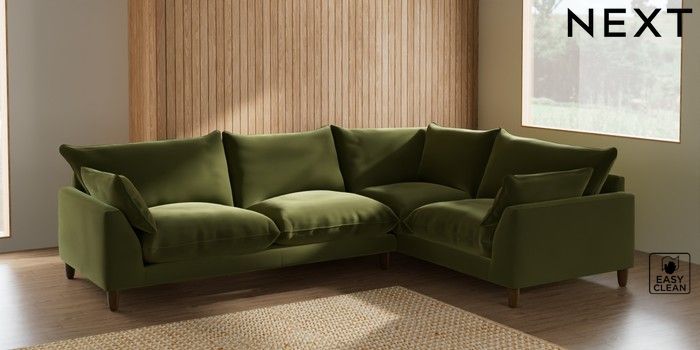 7.2.10 Noa Deep Relaxed Sit Large Corner Sofa - Right Hand Plush Velvet Easy Clean Mid Olive Green High Leg - Mid | Made Click here to use our website with more accessibility support, for example screen readers