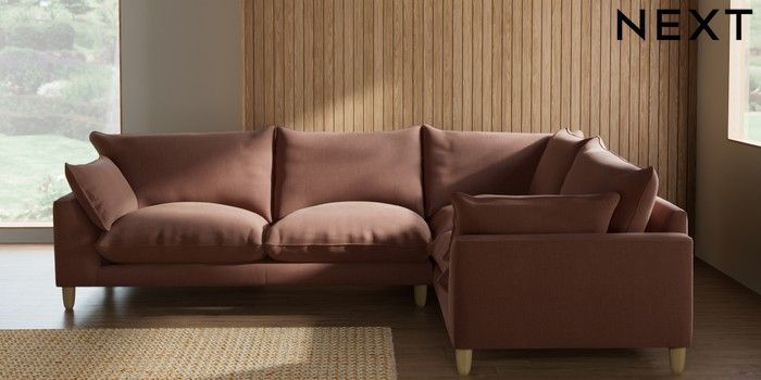 7.2.10 Noa Deep Relaxed Sit Large Corner Sofa - Right Hand Relaxed Linen Look Light Rust Brown High Leg - Light | Made Click here to use our website with more accessibility support, for example screen readers