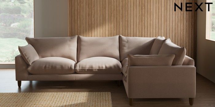 7.2.10 Noa Deep Relaxed Sit Large Corner Sofa - Right Hand Relaxed Linen Look Mid Natural High Leg - Mid | Made Click here to use our website with more accessibility support, for example screen readers
