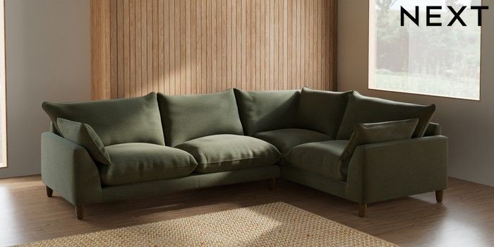 7.2.10 Noa Deep Relaxed Sit Large Corner Sofa - Right Hand Ripple Chenille Mid Moss Green High Leg - Mid | Made Click here to use our website with more accessibility support, for example screen readers