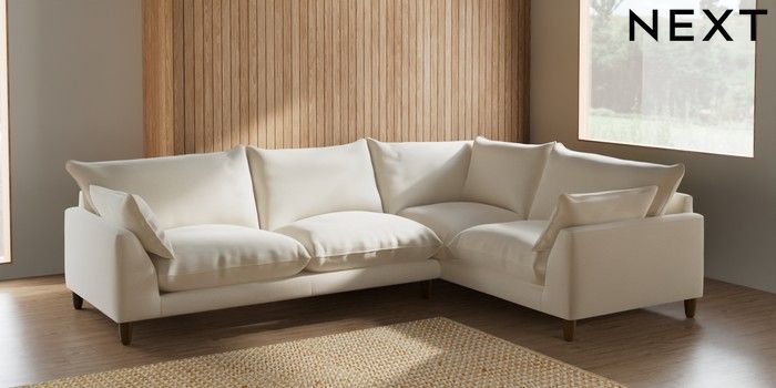 7.2.10 Noa Deep Relaxed Sit Large Corner Sofa - Right Hand Ripple Chenille Oyster High Leg - Mid | Made Click here to use our website with more accessibility support, for example screen readers