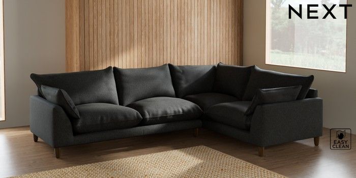 7.2.10 Noa Deep Relaxed Sit Large Corner Sofa - Right Hand Tweedy Blend Easy Clean Charcoal Grey High Leg - Mid | Made Click here to use our website with more accessibility support, for example screen readers