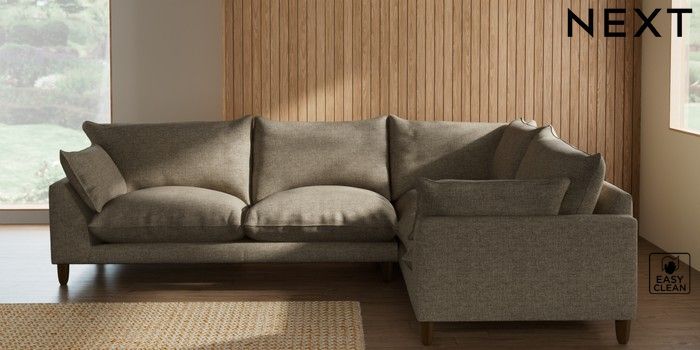 7.2.10 Noa Deep Relaxed Sit Large Corner Sofa - Right Hand Woven Chenille Easy Clean Mid Natural High Leg - Mid | Made Click here to use our website with more accessibility support, for example screen readers