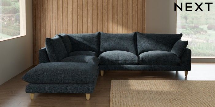 7.2.10 Noa Deep Relaxed Sit Large Open End Corner Chaise - Left Hand Chunky Chenille Dark Navy Blue High Leg - Light | Made Click here to use our website with more accessibility support, for example screen readers