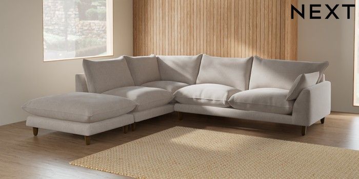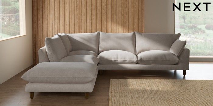 7.2.10 Noa Deep Relaxed Sit Large Open End Corner Chaise - Left Hand Chunky Chenille Oyster High Leg - Mid | Made Click here to use our website with more accessibility support, for example screen readers