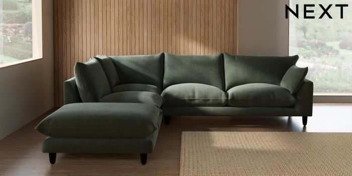 7.2.10 Noa Deep Relaxed Sit Large Open End Corner Chaise - Left Hand Chunky Texture Mid Forest Green High Leg - Dark | Made Click here to use our website with more accessibility support, for example screen readers