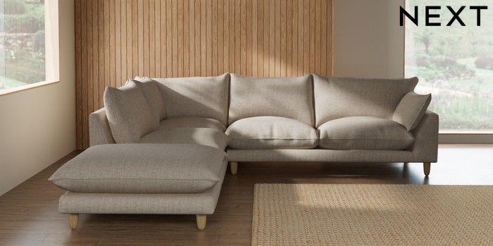 7.2.10 Noa Deep Relaxed Sit Large Open End Corner Chaise - Left Hand Chunky Weave Mid Natural High Leg - Light | Made Click here to use our website with more accessibility support, for example screen readers
