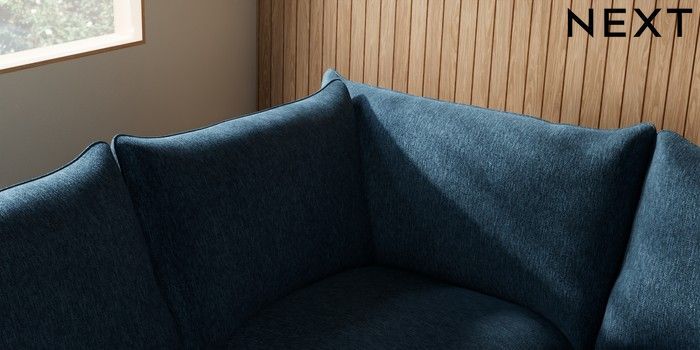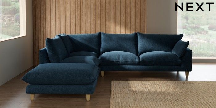 7.2.10 Noa Deep Relaxed Sit Large Open End Corner Chaise - Left Hand Cotswold Chenille Dark Blue High Leg - Light | Made Click here to use our website with more accessibility support, for example screen readers