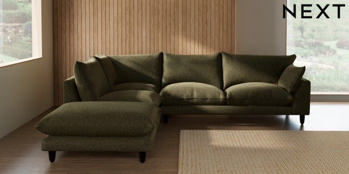7.2.10 Noa Deep Relaxed Sit Large Open End Corner Chaise - Left Hand Cotswold Chenille Dark Green High Leg - Dark | Made Click here to use our website with more accessibility support, for example screen readers