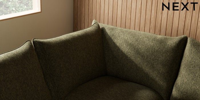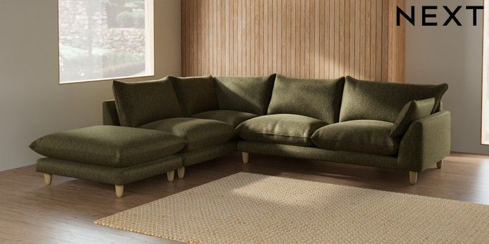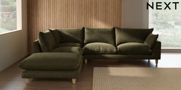 7.2.10 Noa Deep Relaxed Sit Large Open End Corner Chaise - Left Hand Cotswold Chenille Dark Green High Leg - Light | Made Click here to use our website with more accessibility support, for example screen readers