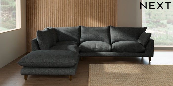 7.2.10 Noa Deep Relaxed Sit Large Open End Corner Chaise - Left Hand Cotswold Chenille Dark Grey High Leg - Mid | Made Click here to use our website with more accessibility support, for example screen readers