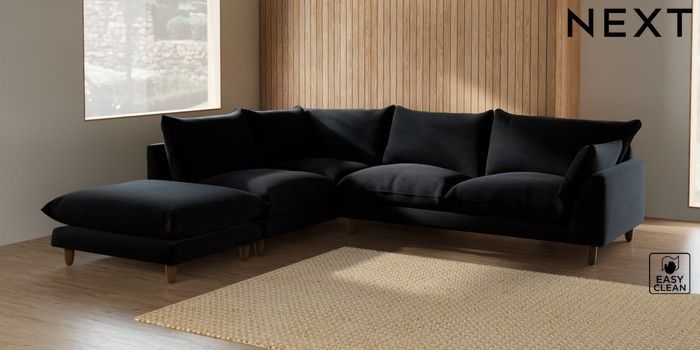 7.2.10 Noa Deep Relaxed Sit Large Open End Corner Chaise - Left Hand Fine Chenille Easy Clean Black High Leg - Mid | Made Click here to use our website with more accessibility support, for example screen readers