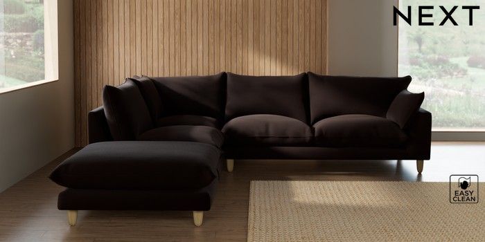 7.2.10 Noa Deep Relaxed Sit Large Open End Corner Chaise - Left Hand Fine Chenille Easy Clean Chocolate Brown High Leg - Light | Made Click here to use our website with more accessibility support, for example screen readers