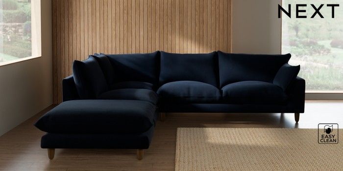 7.2.10 Noa Deep Relaxed Sit Large Open End Corner Chaise - Left Hand Fine Chenille Easy Clean Dark Navy Blue High Leg - Mid | Made Click here to use our website with more accessibility support, for example screen readers