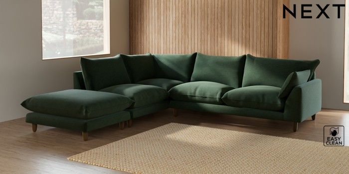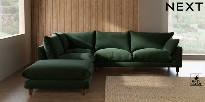 7.2.10 Noa Deep Relaxed Sit Large Open End Corner Chaise - Left Hand Fine Chenille Easy Clean Mid Khaki Green High Leg - Mid | Made Click here to use our website with more accessibility support, for example screen readers