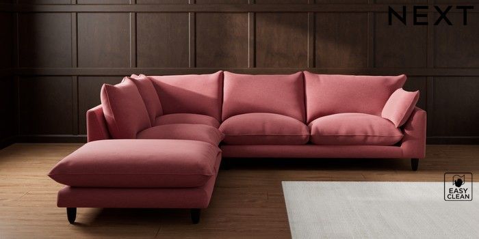 7.2.10 Noa Deep Relaxed Sit Large Open End Corner Chaise - Left Hand Fine Chenille Easy Clean Mid Pink High Leg - Dark | Made Click here to use our website with more accessibility support, for example screen readers