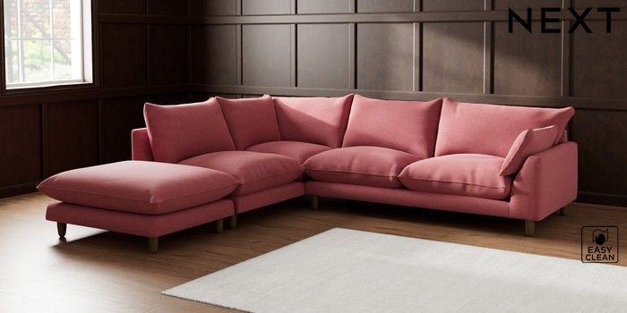 7.2.10 Noa Deep Relaxed Sit Large Open End Corner Chaise - Left Hand Fine Chenille Easy Clean Mid Pink High Leg - Mid | Made Click here to use our website with more accessibility support, for example screen readers