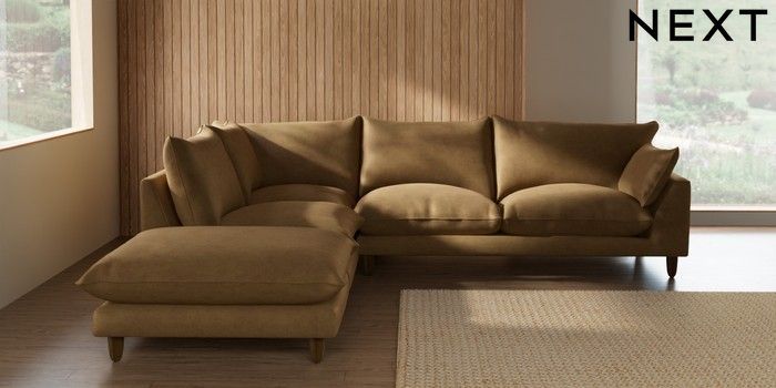 7.2.10 Noa Deep Relaxed Sit Large Open End Corner Chaise - Left Hand Luxe Chenille Honey Yellow High Leg - Mid | Made Click here to use our website with more accessibility support, for example screen readers