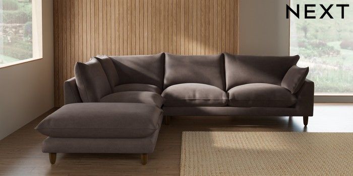 7.2.10 Noa Deep Relaxed Sit Large Open End Corner Chaise - Left Hand Luxe Chenille Mink Brown High Leg - Mid | Made Click here to use our website with more accessibility support, for example screen readers