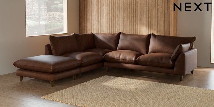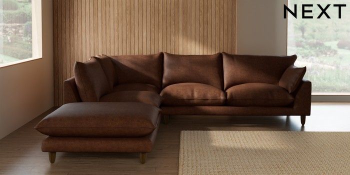 7.2.10 Noa Deep Relaxed Sit Large Open End Corner Chaise - Left Hand Monza Faux Leather Easy Clean Chestnut Brown High Leg - Mid | Made Click here to use our website with more accessibility support, for example screen readers