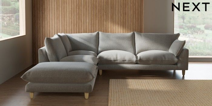 7.2.10 Noa Deep Relaxed Sit Large Open End Corner Chaise - Left Hand Multi Weave Light Blue High Leg - Light | Made Click here to use our website with more accessibility support, for example screen readers