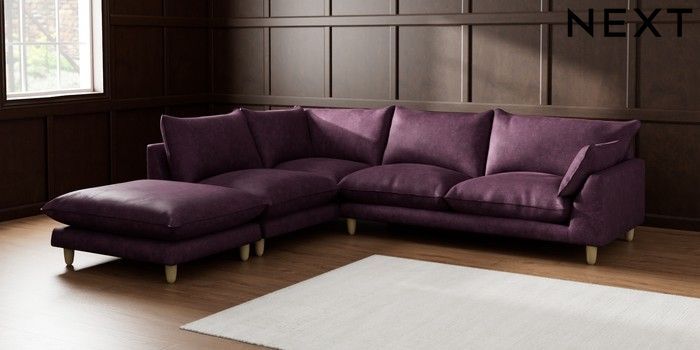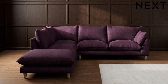 7.2.10 Noa Deep Relaxed Sit Large Open End Corner Chaise - Left Hand Plush Chenille Dark Plum Purple High Leg - Light | Made Click here to use our website with more accessibility support, for example screen readers