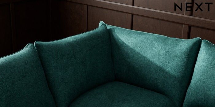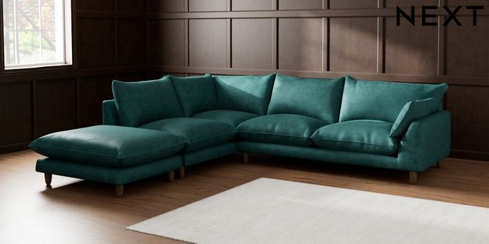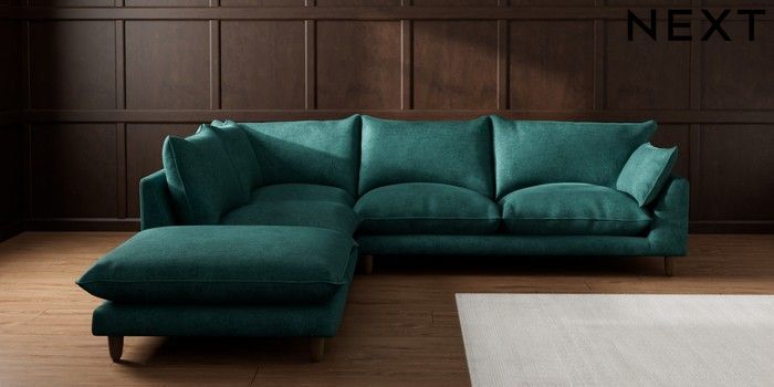 7.2.10 Noa Deep Relaxed Sit Large Open End Corner Chaise - Left Hand Plush Chenille Dark Teal Green High Leg - Mid | Made Click here to use our website with more accessibility support, for example screen readers
