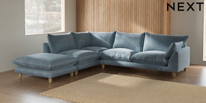 7.2.10 Noa Deep Relaxed Sit Large Open End Corner Chaise - Left Hand Plush Chenille Light Blue High Leg - Light | Made Click here to use our website with more accessibility support, for example screen readers