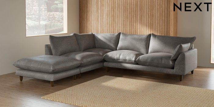 7.2.10 Noa Deep Relaxed Sit Large Open End Corner Chaise - Left Hand Plush Chenille Light Grey High Leg - Mid | Made Click here to use our website with more accessibility support, for example screen readers