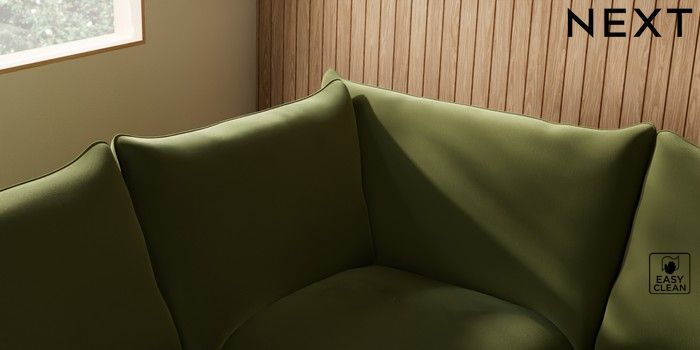 7.2.10 Noa Deep Relaxed Sit Large Open End Corner Chaise - Left Hand Plush Velvet Easy Clean Mid Olive Green High Leg - Mid | Made Click here to use our website with more accessibility support, for example screen readers