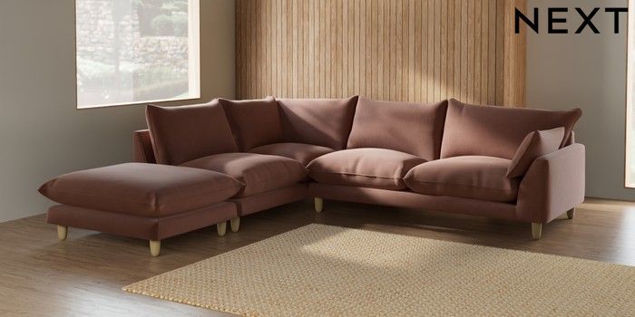 7.2.10 Noa Deep Relaxed Sit Large Open End Corner Chaise - Left Hand Relaxed Linen Look Light Rust Brown High Leg - Light | Made Click here to use our website with more accessibility support, for example screen readers