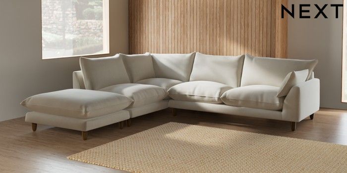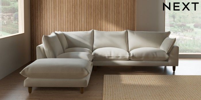 7.2.10 Noa Deep Relaxed Sit Large Open End Corner Chaise - Left Hand Relaxed Linen Look Oyster High Leg - Mid | Made Click here to use our website with more accessibility support, for example screen readers