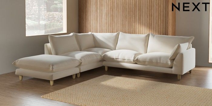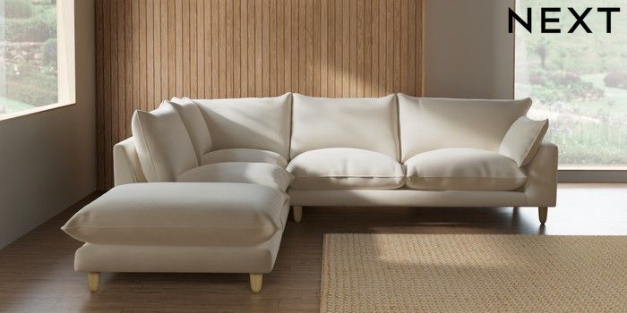 7.2.10 Noa Deep Relaxed Sit Large Open End Corner Chaise - Left Hand Ripple Chenille Oyster High Leg - Light | Made Click here to use our website with more accessibility support, for example screen readers