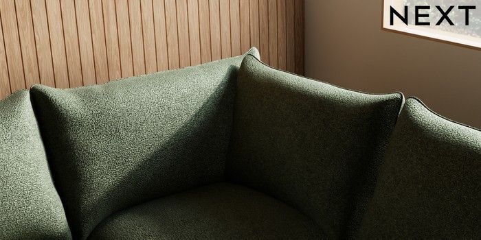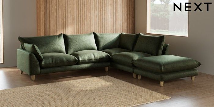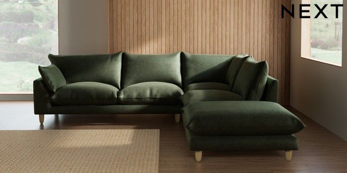 7.2.10 Noa Deep Relaxed Sit Large Open End Corner Chaise - Right Hand Boucle Chenille Dark Moss Green High Leg - Light | Made Click here to use our website with more accessibility support, for example screen readers