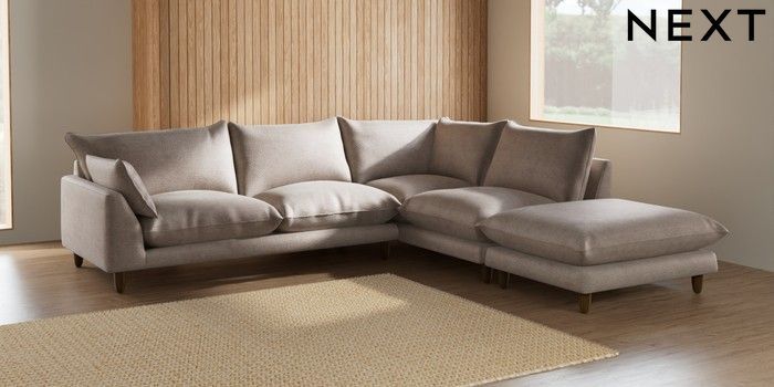 7.2.10 Noa Deep Relaxed Sit Large Open End Corner Chaise - Right Hand Boucle Chenille Light Natural High Leg - Mid | Made Click here to use our website with more accessibility support, for example screen readers