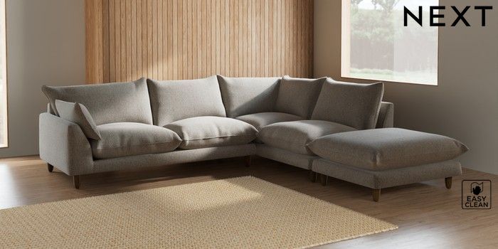 7.2.10 Noa Deep Relaxed Sit Large Open End Corner Chaise - Right Hand Chunky Boucle Easy Clean Dove High Leg - Mid | Made Click here to use our website with more accessibility support, for example screen readers