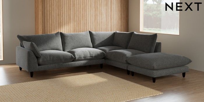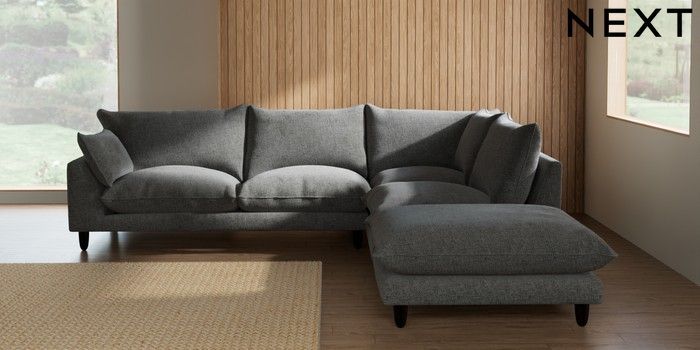 7.2.10 Noa Deep Relaxed Sit Large Open End Corner Chaise - Right Hand Chunky Chenille Dark Grey High Leg - Dark | Made Click here to use our website with more accessibility support, for example screen readers