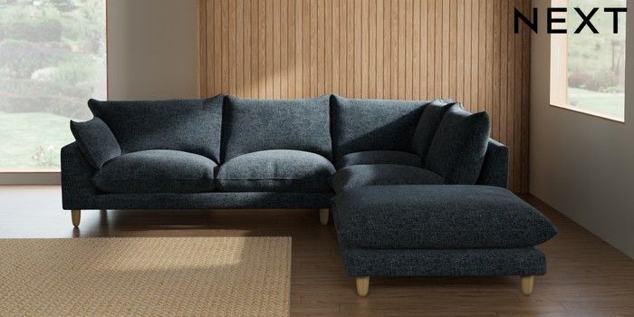 7.2.10 Noa Deep Relaxed Sit Large Open End Corner Chaise - Right Hand Chunky Chenille Dark Navy Blue High Leg - Light | Made Click here to use our website with more accessibility support, for example screen readers