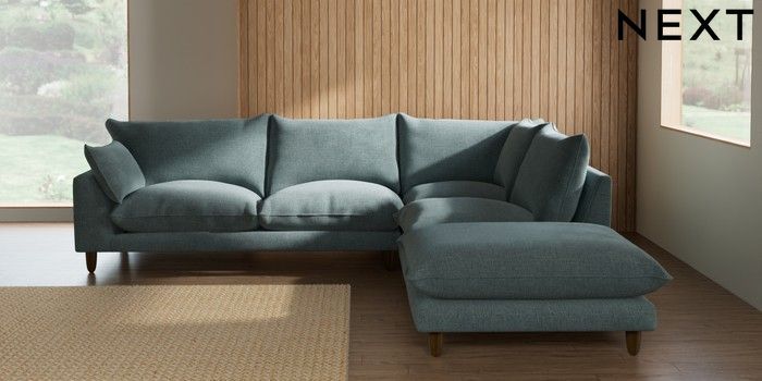 7.2.10 Noa Deep Relaxed Sit Large Open End Corner Chaise - Right Hand Chunky Chenille Light Teal Green High Leg - Mid | Made Click here to use our website with more accessibility support, for example screen readers