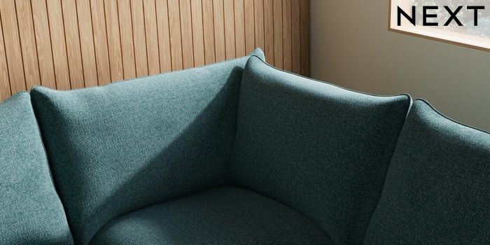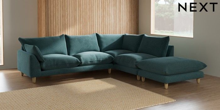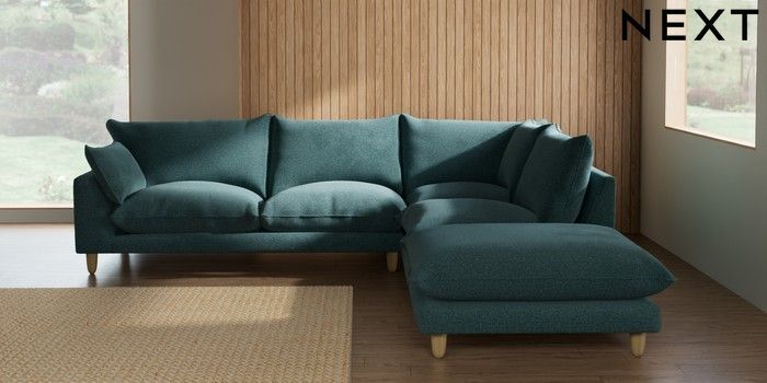 7.2.10 Noa Deep Relaxed Sit Large Open End Corner Chaise - Right Hand Chunky Chenille Mid Teal Green High Leg - Light | Made Click here to use our website with more accessibility support, for example screen readers