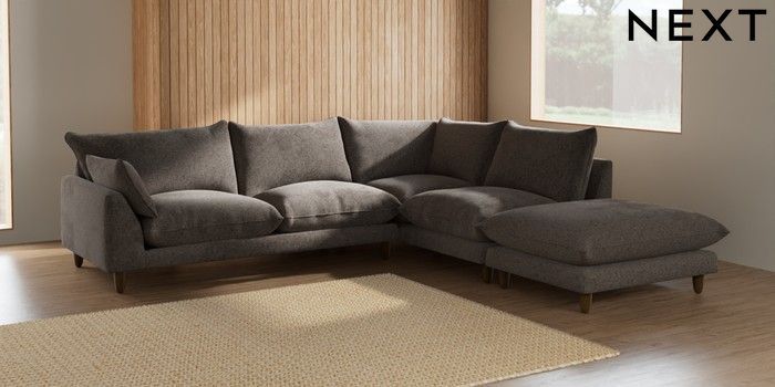 7.2.10 Noa Deep Relaxed Sit Large Open End Corner Chaise - Right Hand Chunky Chenille Mink Brown High Leg - Mid | Made Click here to use our website with more accessibility support, for example screen readers