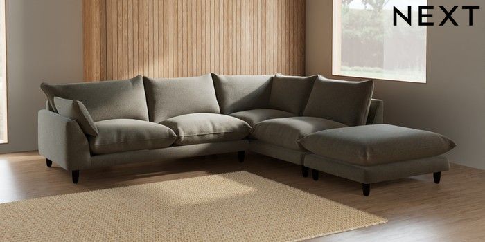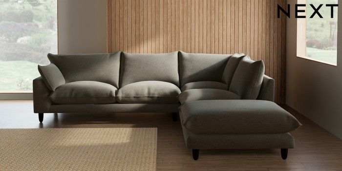 7.2.10 Noa Deep Relaxed Sit Large Open End Corner Chaise - Right Hand Chunky Marl Light Olive Green High Leg - Dark | Made Click here to use our website with more accessibility support, for example screen readers