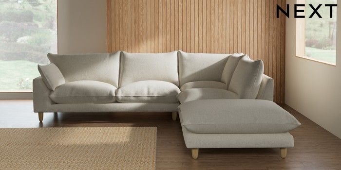 7.2.10 Noa Deep Relaxed Sit Large Open End Corner Chaise - Right Hand Chunky Texture Oyster High Leg - Light | Made Click here to use our website with more accessibility support, for example screen readers