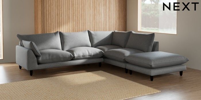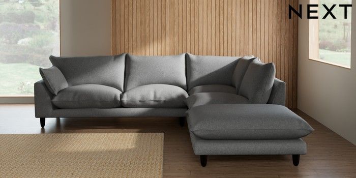 7.2.10 Noa Deep Relaxed Sit Large Open End Corner Chaise - Right Hand Chunky Weave Mid Grey High Leg - Dark | Made Click here to use our website with more accessibility support, for example screen readers