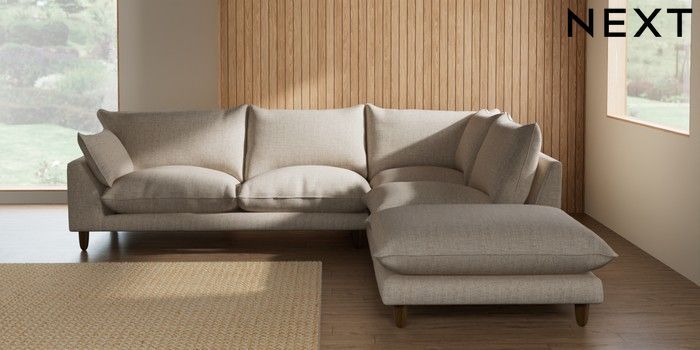 7.2.10 Noa Deep Relaxed Sit Large Open End Corner Chaise - Right Hand Chunky Weave Mid Natural High Leg - Mid | Made Click here to use our website with more accessibility support, for example screen readers