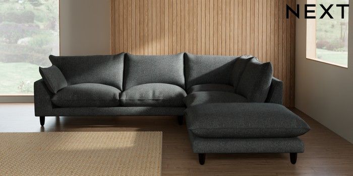 7.2.10 Noa Deep Relaxed Sit Large Open End Corner Chaise - Right Hand Cotswold Chenille Dark Grey High Leg - Dark | Made Click here to use our website with more accessibility support, for example screen readers